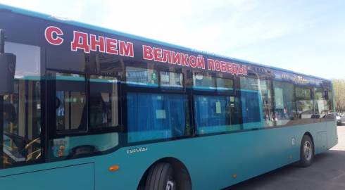 В честь 75-летия Великой Победы карагандинские автобусы украсили в праздничной тематике.