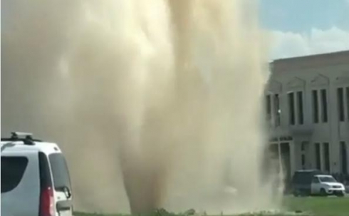 В Караганде снова произошел сильный порыв. Фонтан бьет из-под земли