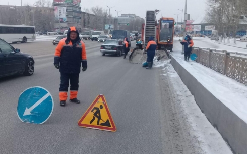 Пешеходную часть на центральном путепроводе Караганды почистили