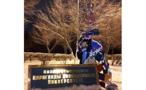 Елку из зачеток и рефератов установили студенты в Караганде