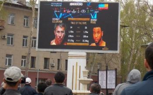 В Караганде на площади перед Дворцом культуры горняков на уличном телеэкране транслировался бой Геннадия Головкина с американцем Домиником Уэйдом.