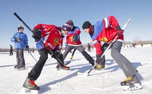 Озеро центрального парка города Караганды в зимний период становится хоккейной ареной "Парковой Хоккейной Лиги"
