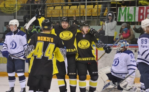 В рамках матча чемпионата ВХЛ в Караганде «Сарыарка» сыграла с балашихинским «Динамо».