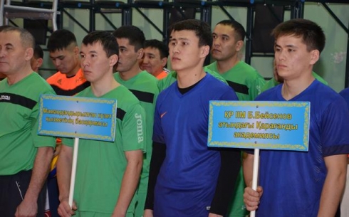 В преддверии Дня Независимости Республики Казахстан в зале физкультурно-спортивного общества "Динамо" ДВД Карагандинской области проходит открытый турнир по волейболу.