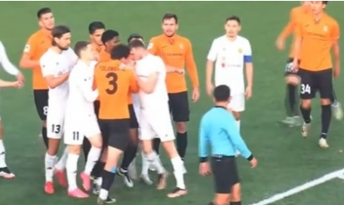 Жесткие разборки на поле произошли во время матча между местным «Шахтером» и костанайским «Тоболом»