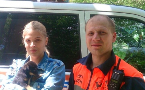 В Караганде спасатели вызволили щенка из двухдневного бетонного плена