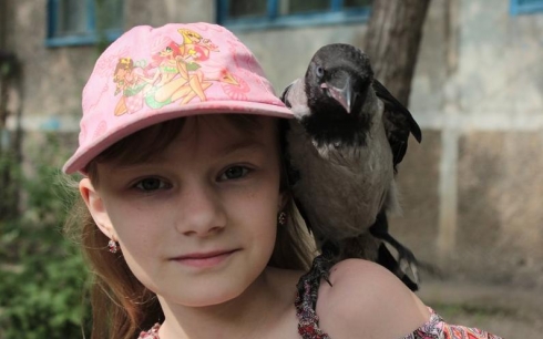 Карагандинская школьница спасла и приручила ворону