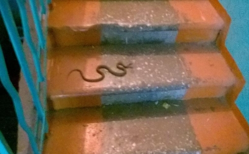 В карагандинский подъезд заползла змея, внешне напоминающая гадюку