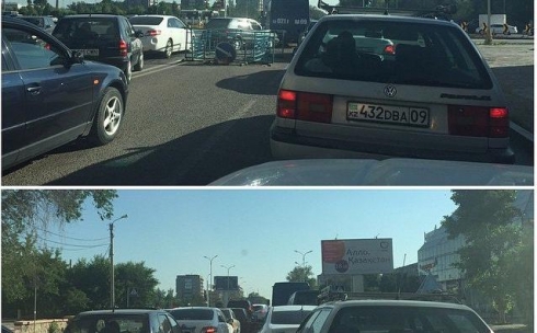 Уже 18 дней возле самого крупного перекрестка Бухар жырау/Ермекова не могут заделать "дыру" в дороге