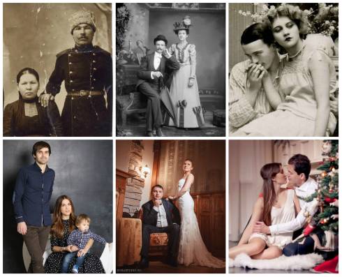Салонные фото, на которых мои чинные прабабушки сидели в лучшем платье, а за спинкой стула стояли важные прадедушки в военной форме, с усами и в сапогах, начищенных до зеркального блеска, меня всегда смешили и умиляли. Торжественные выражения лиц, напряженные позы, забавные задники с пальмами, античными руинами или туманной далью...