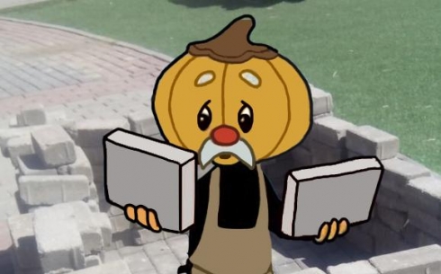 На аллее Степного-1 дети строят из брусчатки домики